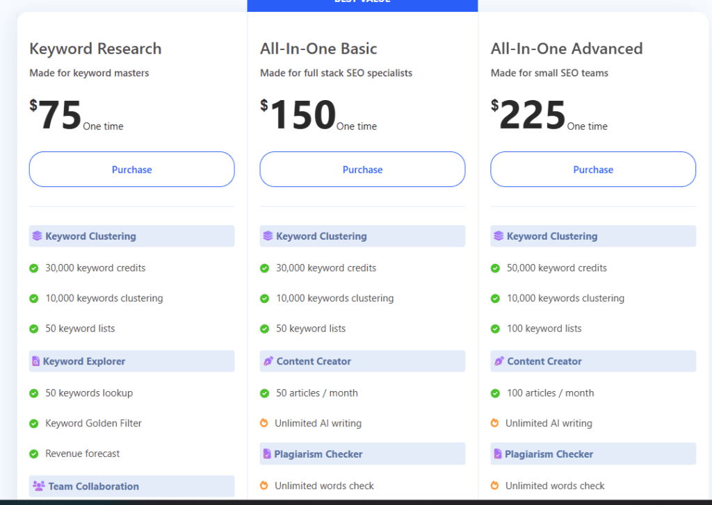 | WriterZen | Keyword clustering | LLM context | Indirect | Strong | From $19/mo | Easy |