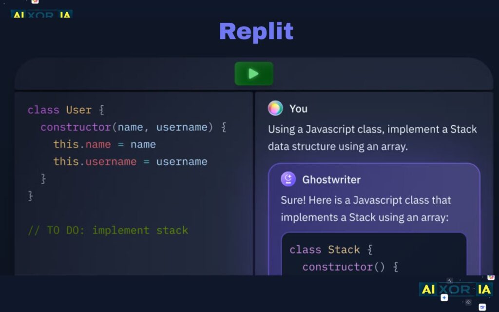 Ghostwriter is an AI development assistant integrated into the Replit online coding environment. It helps developers write code, debug errors, and deploy applications quickly.