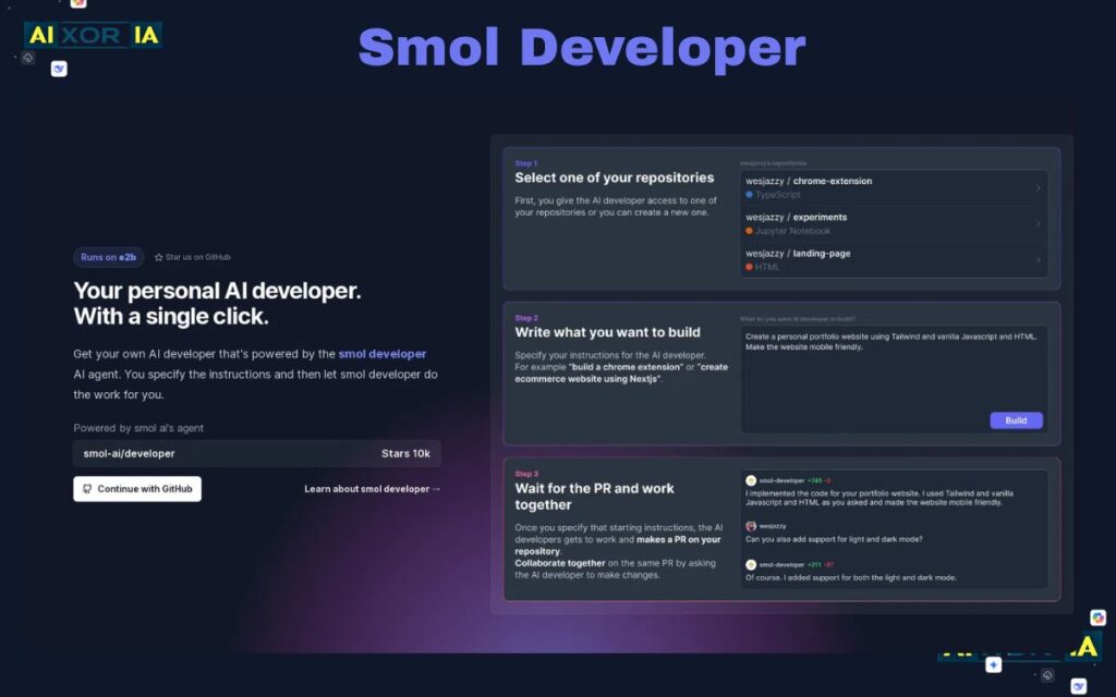 Smol Developer is an experimental AI framework that allows developers to generate software projects through prompts. It helps automate project setup and initial coding tasks.